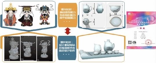 在教学创新探索方面探索课堂内外、线上线下融合的路径,分享国内优秀的设计素材网站、国内知名的在线课程平台、前沿设计软件、AI技术等,拓展学生的知识视野,培养学生可持续学习的能力。将大学生创新创业训练计划、科研项目、设计大赛等内容纳入课堂专题训练,根据项目要求开展课题研究,锻炼其解决实际项目问题的能力。