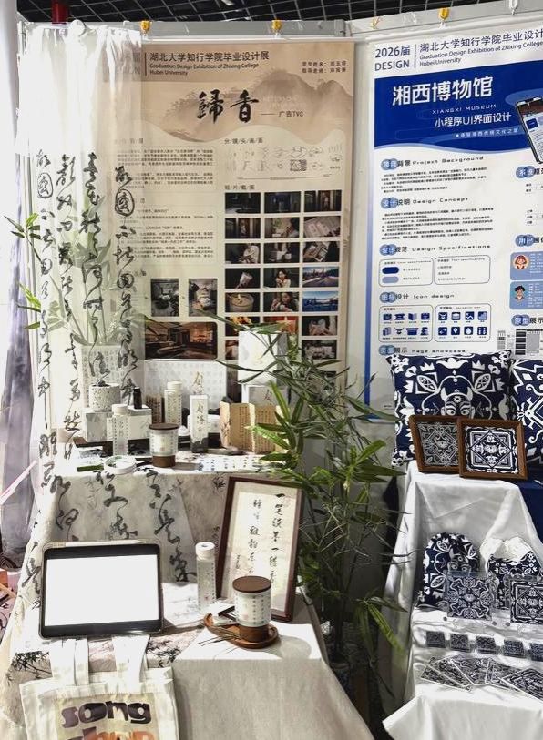 2025年11月10日,湖北大学知行学院艺术与设计学院隆重举办2026届设计类毕业作品展。本次展览以“琢境”为主题,聚焦新时代背景下设计与媒介的跨界融合。所谓“琢”,代表设计的精研与创造,是对材质、科技与美学的反复推敲;而“境”,则指这些元素共同作用所生成的场域、体验与精神空间。展览汇集了艺术与设计学院2026届本科生创作的200余件毕业作品,涵盖数字媒体艺术、视觉传达、环境设计、风景园林等多个专业方向。