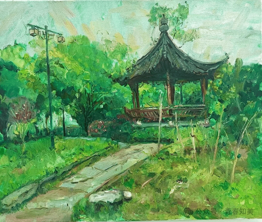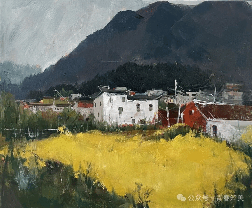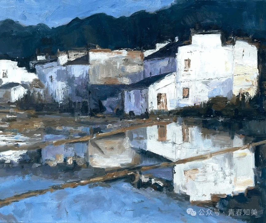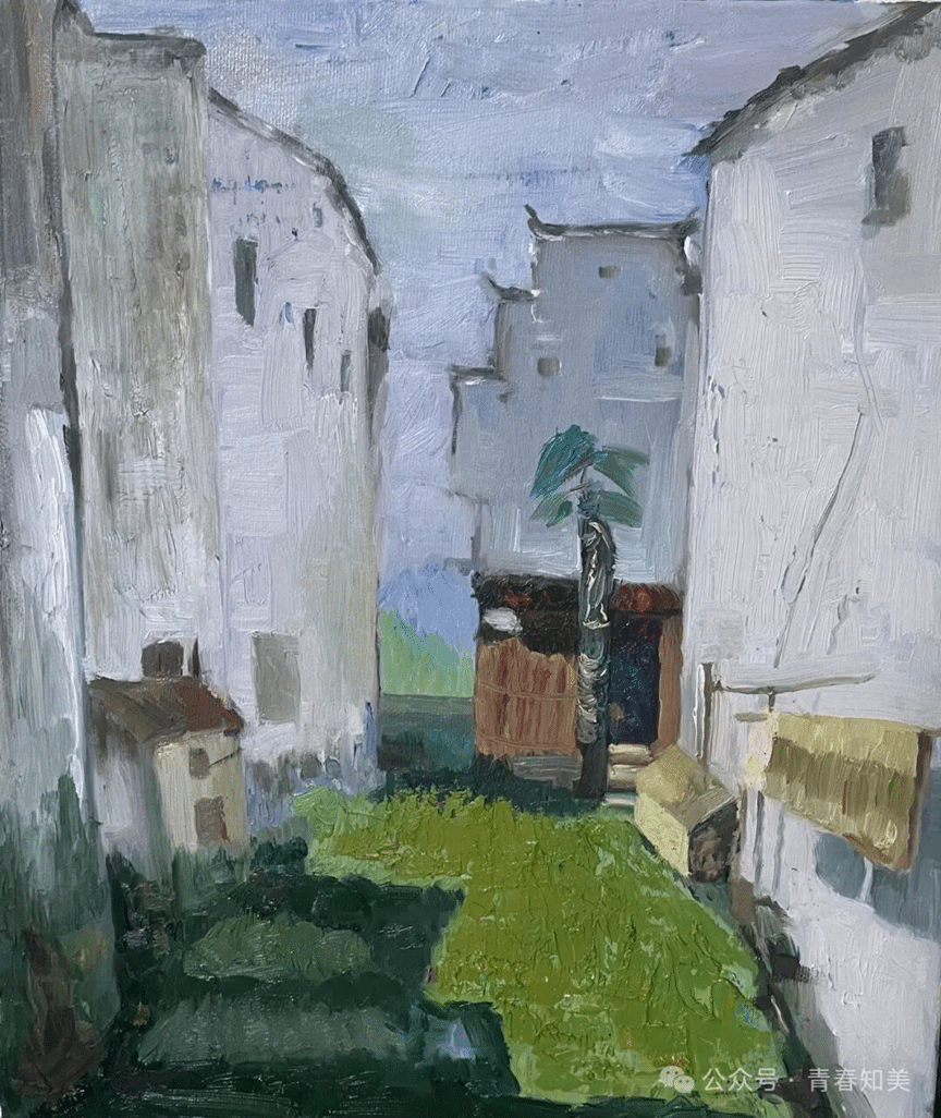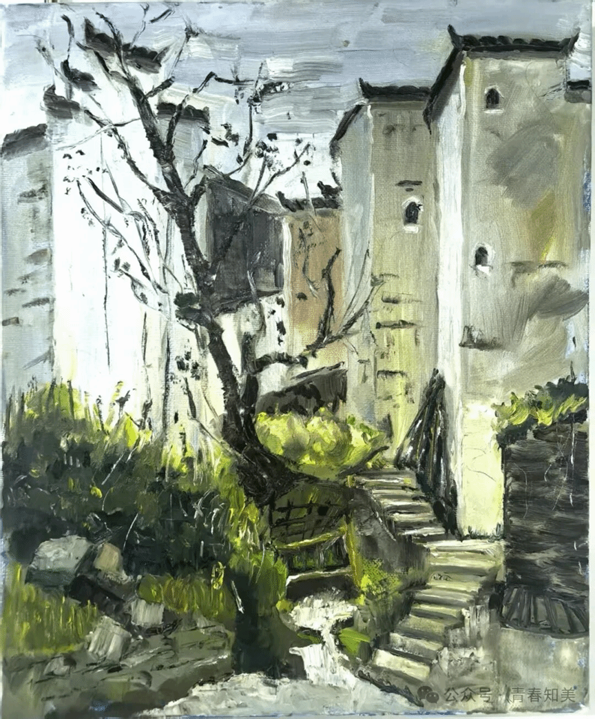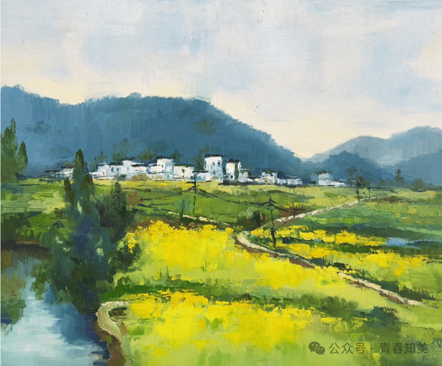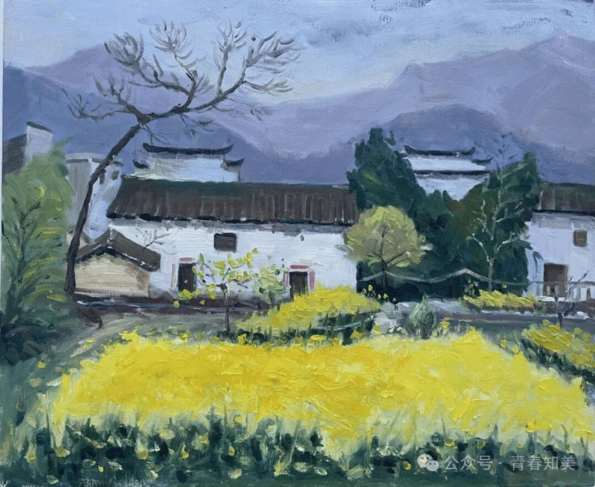 当23级美术学的同学们笔触触及婺源美景时,画布便成了另一个时空的窗口。粉墙黛瓦的徽派古宅、金灿灿的油菜花海、蜿蜒流淌的潺潺溪流,在他们的油画刀下层层晕染,化作永不褪色的古韵诗行。