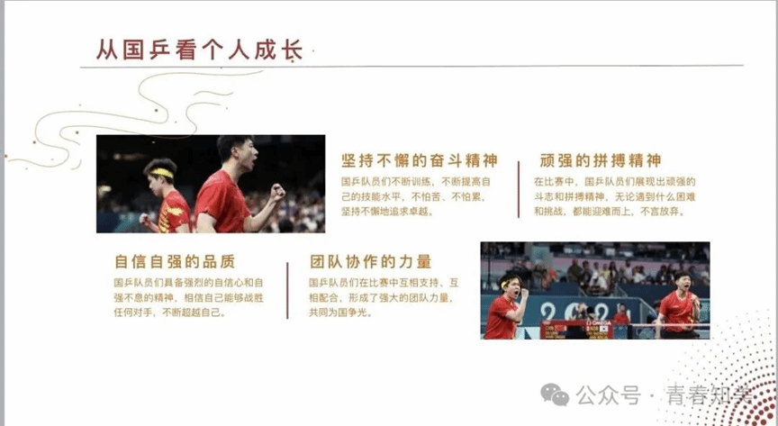 课程最后,殷老师深度挖掘中华体育精神的文化基因。通过解析国乒队伍“祖国至上、敢打硬仗”的精神密码,揭示了“小我”与“大我”的价值统一:运动员在国际赛场升国旗奏国歌的荣耀时刻,正是爱国主义教育的鲜活教材。这种将个体奋斗融入国家发展的叙事方式,有效激发了青年学子的家国情怀。