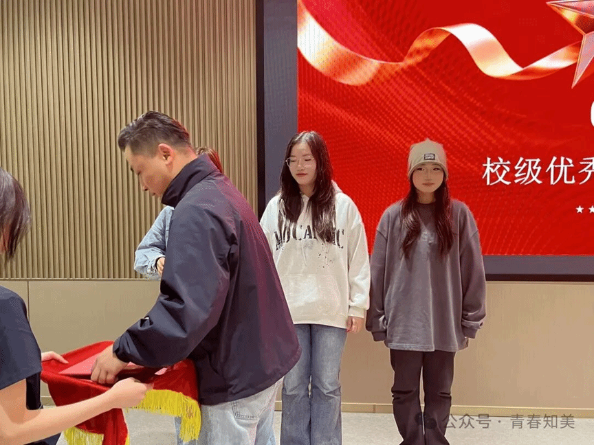 陈昱恒老师的登场,让仪式步入高潮:他不仅宣读校级优秀学生干部名单并颁发证书,更亲手将第十六届干部聘书交至离任同学手中,随后揭晓的第十七届学生干部任命名单,是责任的接力。当院旗在新旧主席团间完成交接,旗帜的温度里,是传承的重量。