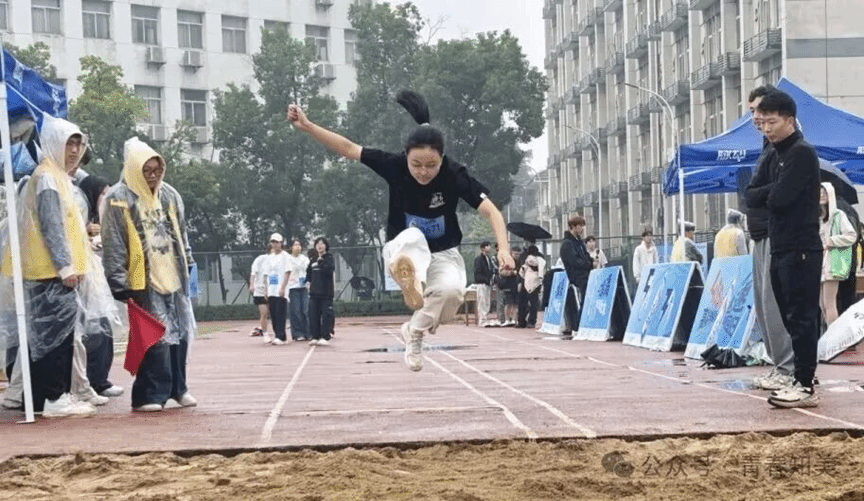 跳远沙坑前,腾空跃起的弧线,是力量与技巧的完美融合;