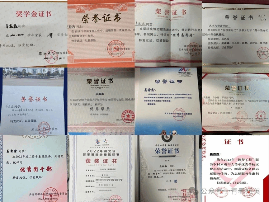 生活中:躬身实践,培养能力。我通过担任班级职务、参与党支部工作等实践平台,有效提升了团队协作与组织能力,为未来职业发展奠定基础;同时积极投身社会实践,依托专业优势开展志愿服务、美育支教等活动,在服务社会中强化责任意识,实现个人综合素质的全面提升。