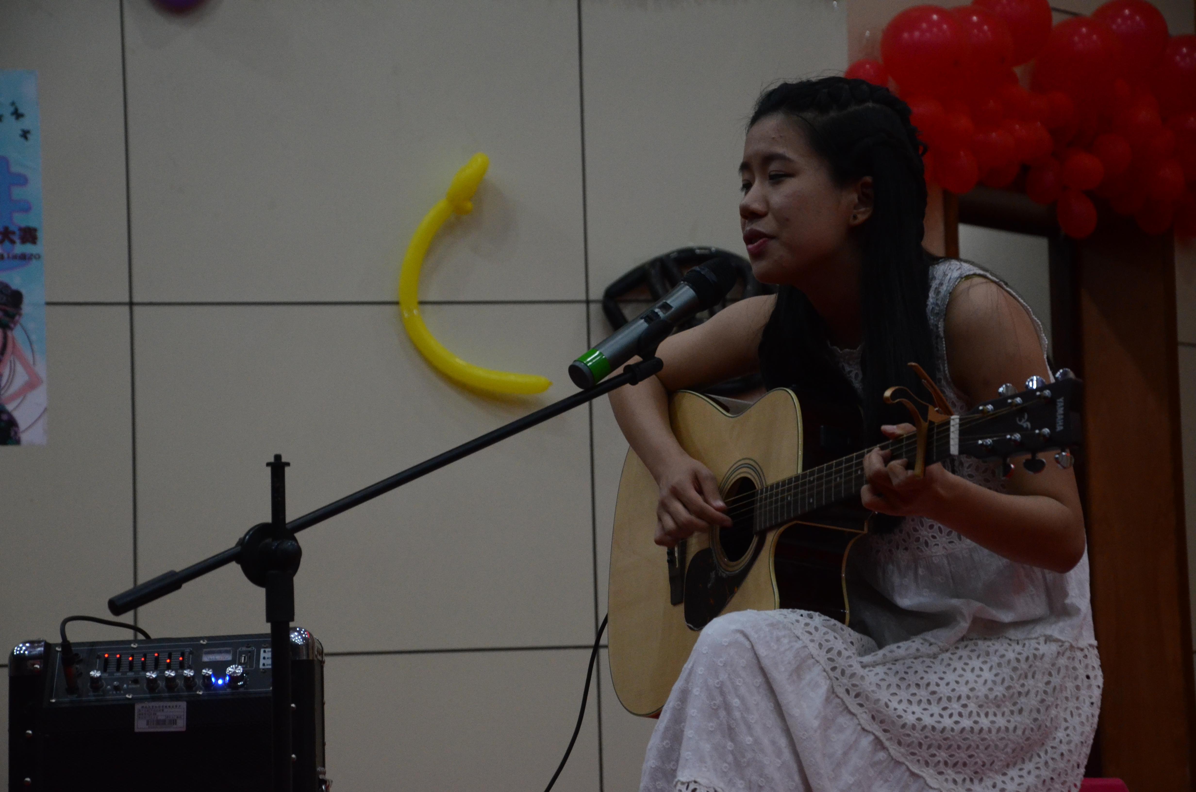 在精彩的开场舞和开幕词之后,比赛正式开始。由学院层层选拔,成功晋级的十四位选手,依次上场清唱一曲之后做自我介绍,让观众耳目一新。台下的亲友团热情高涨,呐喊着为选手加油,助威。选手们的演唱,或低婉深情,或热情奔放,或清新明快,给观众们带来了听觉的盛宴。经过两轮激烈的角逐,会计系的柳研秋同学一曲《我是一只小小鸟》得到评委的一致好评,荣获冠军。艺术系的王歆仪同学以其独特的表演形式,自弹自唱 《Idiot》,斩获亚军。经管系的乔慧娟同学获得季军。