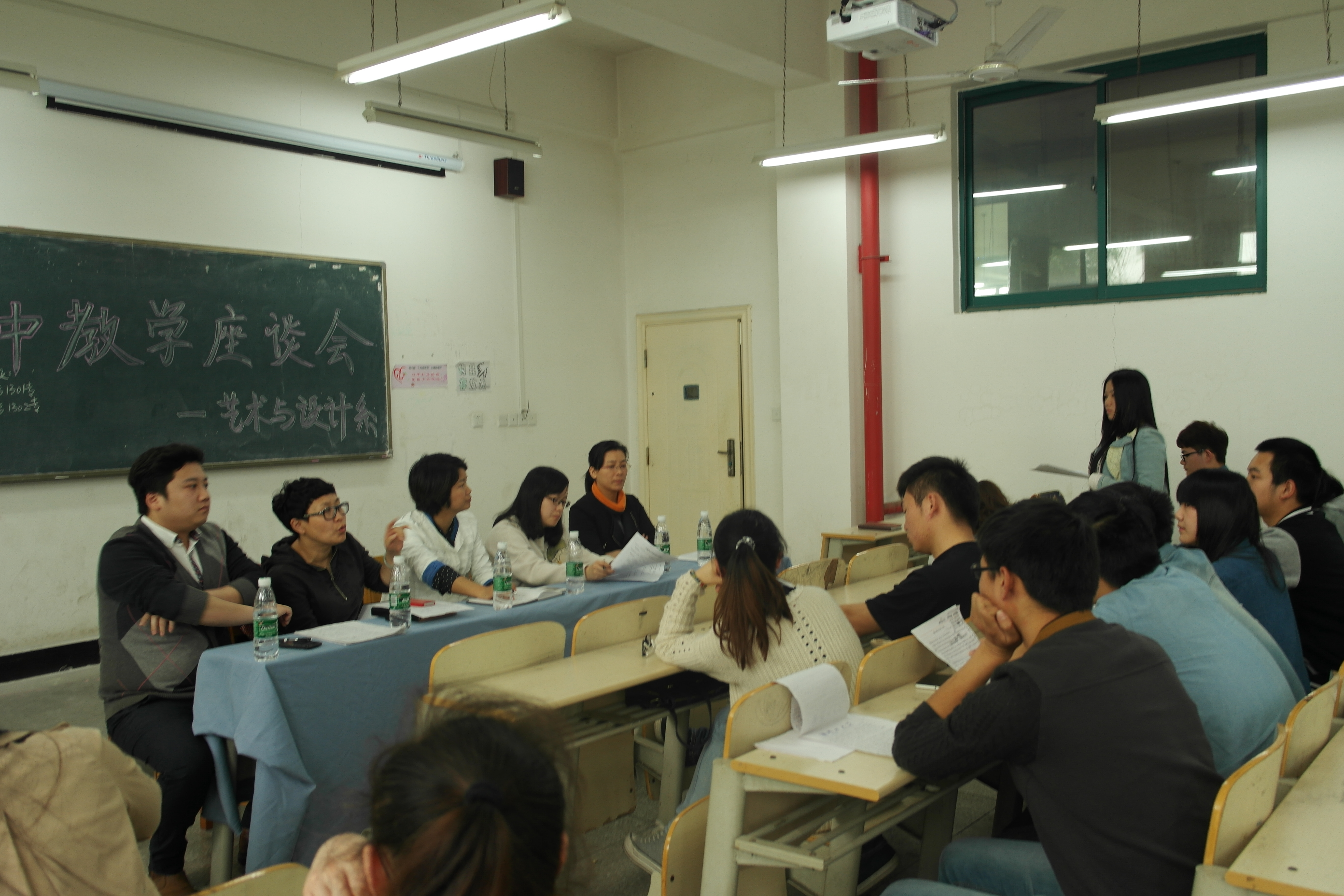 为了认真总结前阶段教学检查工作,全面了解教学运行和教学中存在的问题,及时听取学生对教学工作的意见和建议。2014年4月22日下午2:30,艺术与设计系在知真楼104室召开期中教学座谈会。座谈会由系部教学主任刘晓英主持,系部的祝书记等领导、各班的辅导员以及系部学生会主席团都到场参加了会议,同时还特别邀请了两位优秀老师听会。