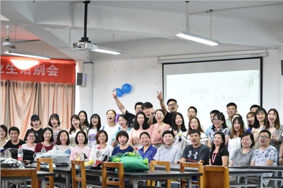 座谈会入场前,18届优秀毕业生在展板前留言。座谈会在陈书记致辞中正式开始,优秀创业代表唐振东分享创业经历,为在校生传授了经验,扩展见闻;优秀考研代表刘琪讲述了自己的考研经历,呈现了一条清晰而又宽阔的求学之路;优秀学生干部曹泽玲学姐给在校生15、16级优秀学生代表分享了如何协调好学习和工作,期待同学们在大学中更好地提高自己,珍惜大学四年光阴。座谈会中,教师及辅导员对同学们提出毕业寄语,希望同学们走向社会能够把握机遇,不负韶华,不畏远方。