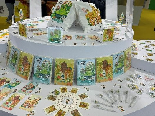 艺术学院师生团队从设计调研、手绘草图,到数字建模、打样生产,全程紧密协作、高效推进,实现了课堂知识与实践应用的融合,让创意“落地成金”。22级视觉传达专业学生王馨月设计了兼具活泼风格与荆楚文化韵味的IP形象;刘颖、张盈盈、史鑫鑫与23级学生张超、沈逸菲共同完成了主视觉、系列海报及场景设计;随后,刘颖带领小组进一步延伸开发出环保帆布袋、文创笔、笔记本、全谷物贴纸、冰箱贴、拼图、钥匙扣、魔方等十余款定制周边产品。