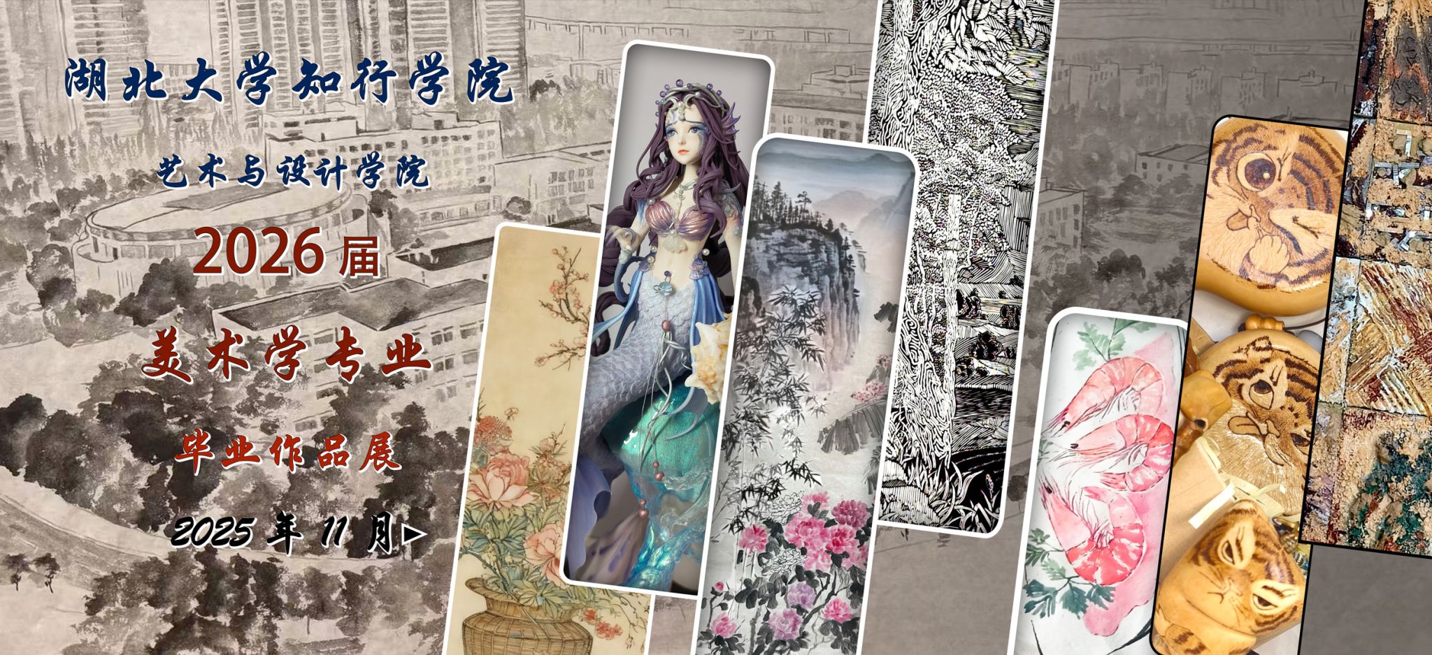 为集中检阅美术专业教学成果,彰显青年学子的艺术创作活力与学术探索精神,2025年11月26日,艺术与设计学院2026届美术专业毕业设计作品展在知美楼一楼展厅隆重拉开帷幕。
