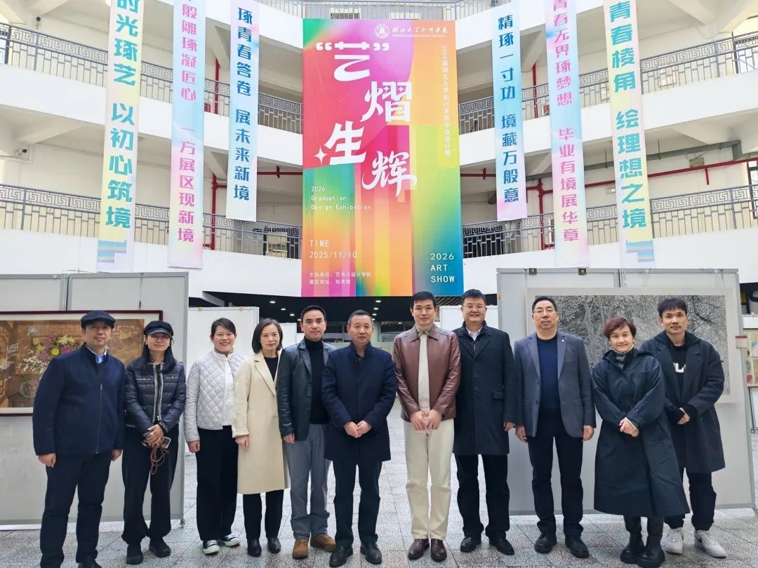 毕业作品展备受校领导高度关注,校长何顺进,党委副书记黄智凌,副校长刘张虎、刘齐,以及党委与行政办公室主任任秀霞、组织人事部部长汤姣云、教务处处长易有明、学工处处长王刚等领导亲临现场参观指导。参观期间,领导们驻足品鉴参展作品,与参展师生深入探讨创作思路、技法运用与主题表达,对本届毕业设计作品的艺术格调、创作水准以及展览的统筹组织成效给予充分肯定。同时,围绕毕业设计成果转化、深化校企合作与产教融合、推动艺术设计方案落地应用等核心议题,领导们提出指导性建议,为学院未来美术专业人才培养方向与教学实践改革路径指明方向。
